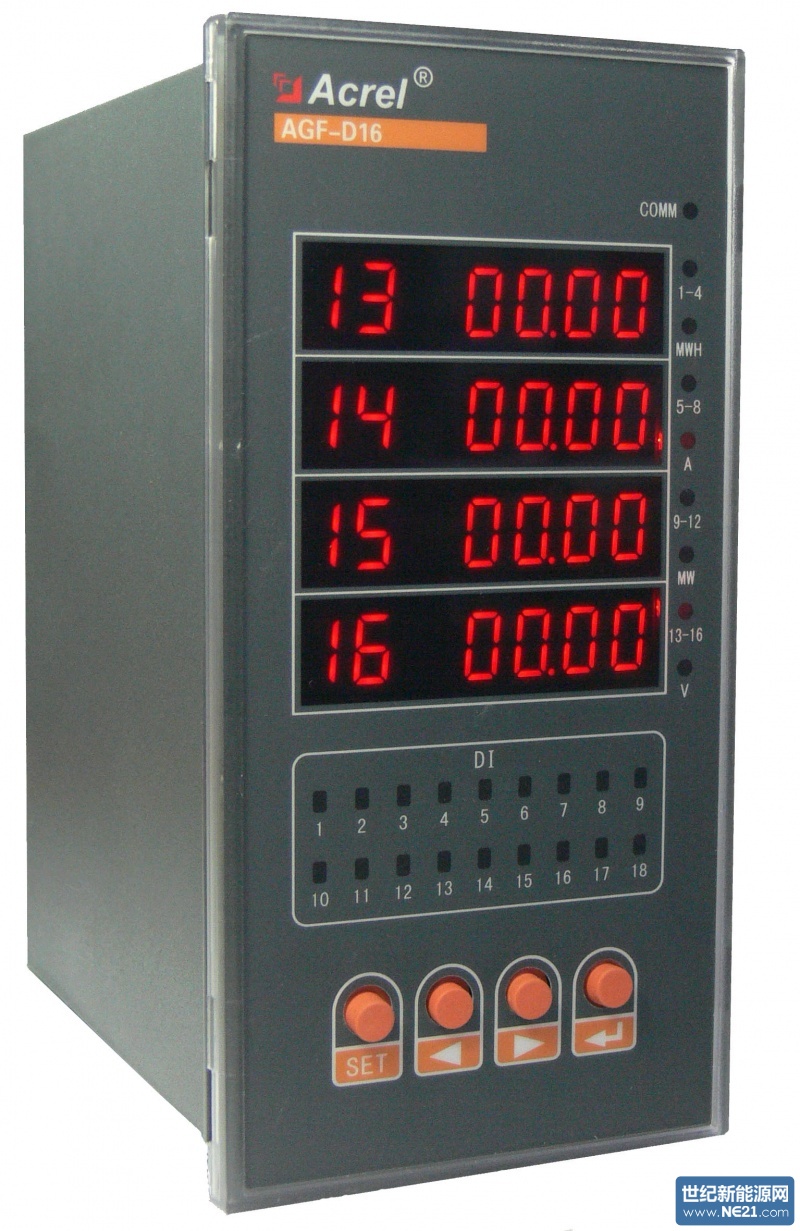 AGF-D光伏直流柜采集裝置,主要用于光伏直流柜內(nèi),配合外部霍爾傳感器對匯流箱輸出電流電壓等進(jìn)行測量,同時(shí)可以監(jiān)控直流柜內(nèi)斷路器、防雷器狀態(tài)。表內(nèi)自帶溫度傳感器可以輔助測量柜內(nèi)溫度,配合繼電器輸出可以實(shí)現(xiàn)自動(dòng)溫控的柜內(nèi)強(qiáng)制鼓風(fēng)冷卻功能。裝置帶有RS485接口可以把測量和采集到的數(shù)據(jù)和設(shè)備狀態(tài)上傳。