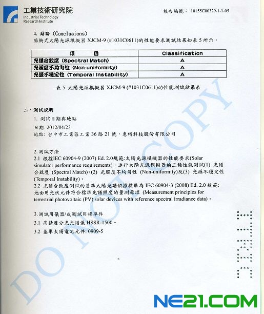世紀(jì)新能源網(wǎng)訊,2012年4月,陜西眾森電能科技有限公司電池片測試儀XJCM-9獲得臺灣工研院AAA認(rèn)證,成為目前國內(nèi)首家獲此殊榮的設(shè)備生產(chǎn)廠家。
