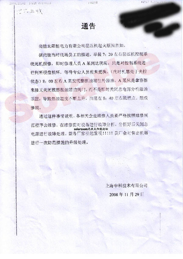 12月29日,上海申科給各客戶發送了告知傳真說明造成事故原因是檢修人員違反操作流程導致。截止目前(12月2日)尚德及子公司尚能設備廠商上海申科均未公布具體傷亡情況和員工具體姓名及受傷員工所在公司。