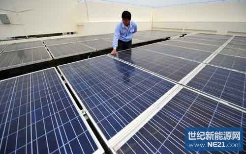 2013年12月31日,工作人員在檢查太陽能電池板。