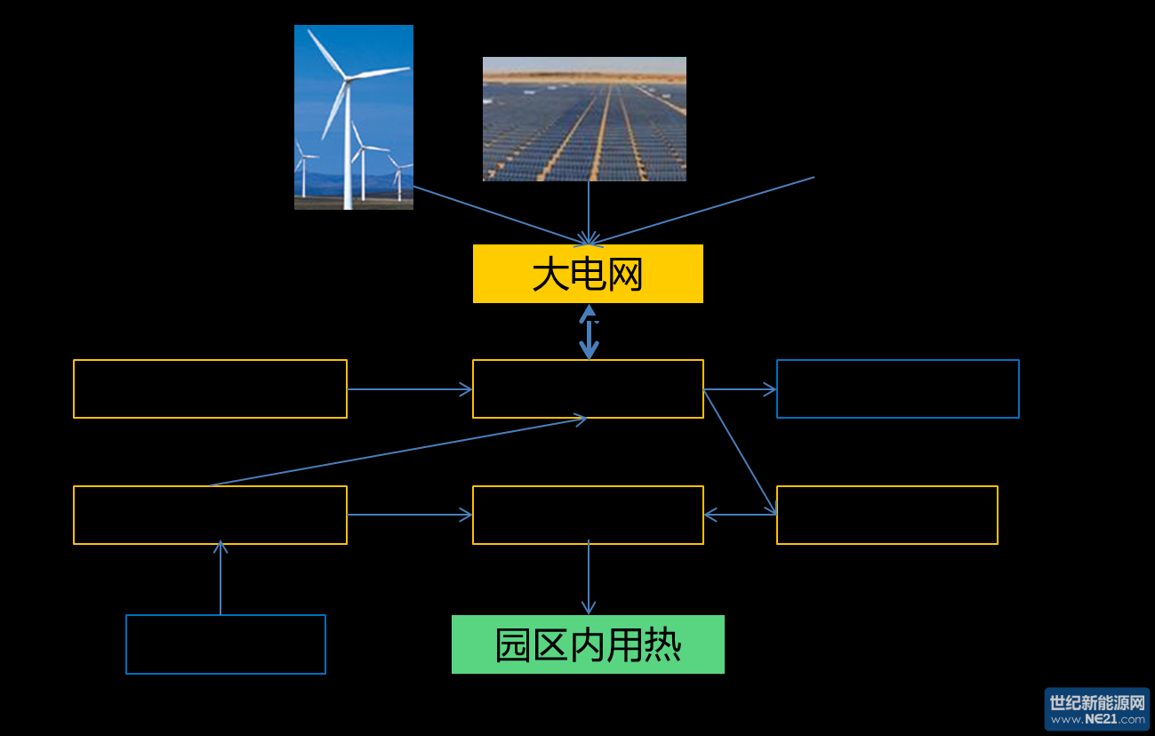 首先是我們今天經常說的微網。在柏林有一個很有名的歐洲能源園——EUREF Energy Campus,這個園區是按照2050年的二氧化碳排放標準設計的。2050年二氧化碳相對于1990年要減排80%,關于這個這個園區有句口號:2050年的德國,你今天見得到。在這個園區中有風光電(光伏和小風電)。微網最重要的一點是,在電多的時候,要想辦法把發的電吃進去,例如啟動熱泵制熱,盡力不把多余的電力輸入到電網,因為當微網中電力過多的時候,整個電網的電力也過多。如果電力不夠的時候,就使用熱電聯供供電或者使用以前存儲的熱力,不開熱泵。