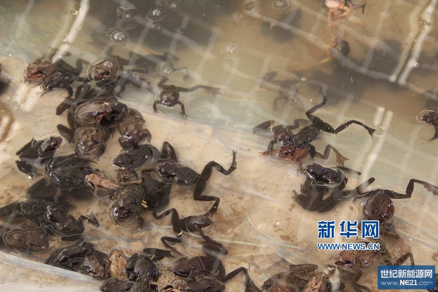 3月28日,在河南省內黃縣100兆瓦光伏農業林蛙養殖區,工人們正在忙著打撈蛙卵。陽春三月,河南省內黃縣光伏農業林蛙養殖區的3萬對種蛙正在棚內孵化,預計今年林蛙養殖數量將達到1500萬只,分養到200多棟光伏大棚內。據了解,林蛙不僅是餐桌上的一道美味佳肴,也是頂級的保健品和化妝品生產原料。