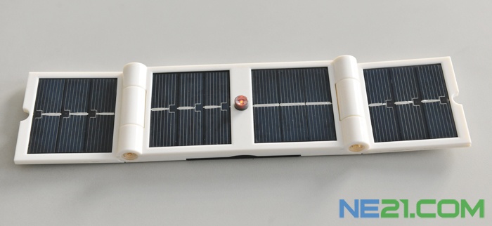 日前,2011中國國際綠色創新技術產品展在廣州開幕,展會上中國綠色能源企業英利集團的研發人員展示一款名為“世界杯便攜式太陽能充電器”的產品,這款由4塊太陽能電池板構成的充電器在太陽光下可以為手機等數碼產品充電。